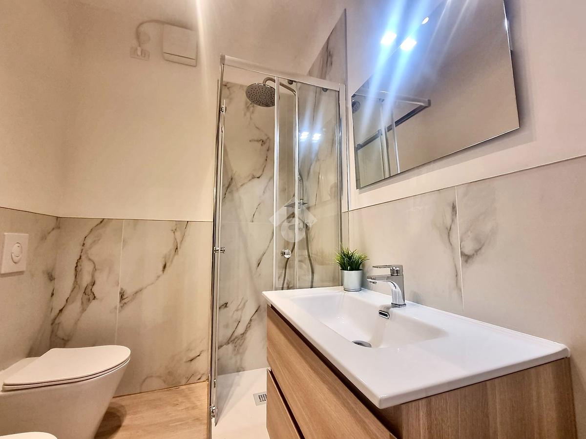 Il disimpegno ci accompagna alla camera da lettto doppia anch'essa servita da un comodo terrazzo e ai due bagni completi con box doccia.